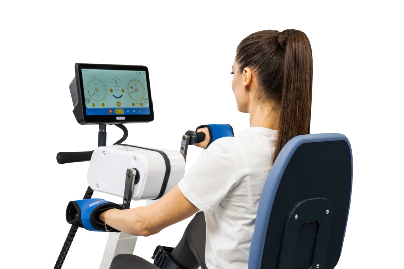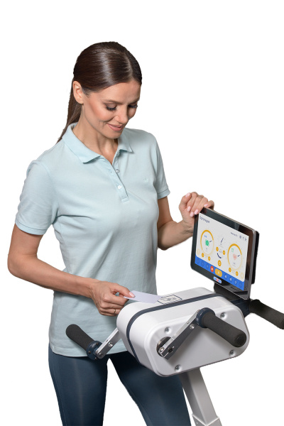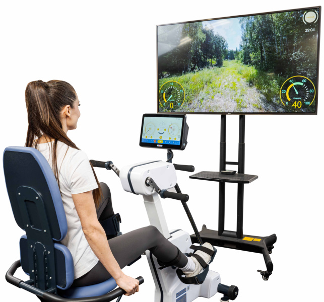 Отображает параметры и результаты тренировки на дисплее, распознаёт спазматическое состояние. Работает в режиме медицинского велоэргометра. Подходит для применения в неврологии, кардиологии, травматологии, ортопедии, спортивной медицине, геронтологии.