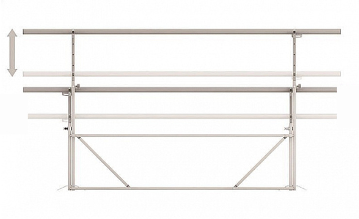 - Высота нижнего поручня регулируется с шагом 5 см, верхнего – с шагом 10 см;