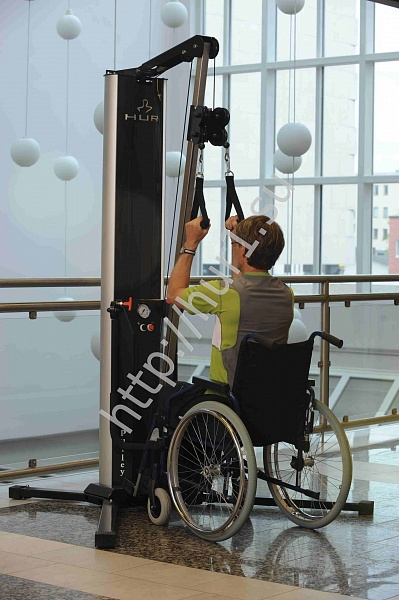 Многофункциональный тренажер доступен для пользователей в инвалидных креслах-колясках.