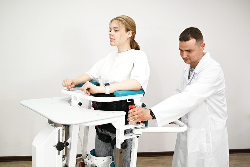 Вертикализатор позволяет удерживать вертикальное положение тела, что способствует улучшению результатов реабилитационного процесса посредством тренировки и укрепления верхнего плечевого пояса, мышц шеи и нижних конечностей в положении стоя у людей, не способных стоять без посторонней помощи.